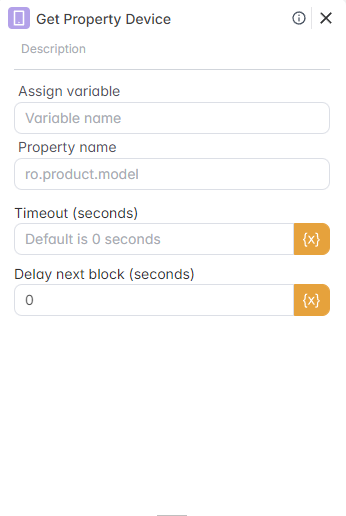 Property name: Tên thuộc tính của device (ex : ro.product.model để lấy ra thuộc tính model)\