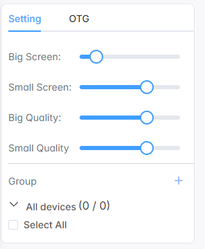 **Big Screen**: Điều chỉnh kích thước màn hình trực tuyến của thiết bị. Kích thước màn hình tối thiểu là 40% và tối đa là 100%.
